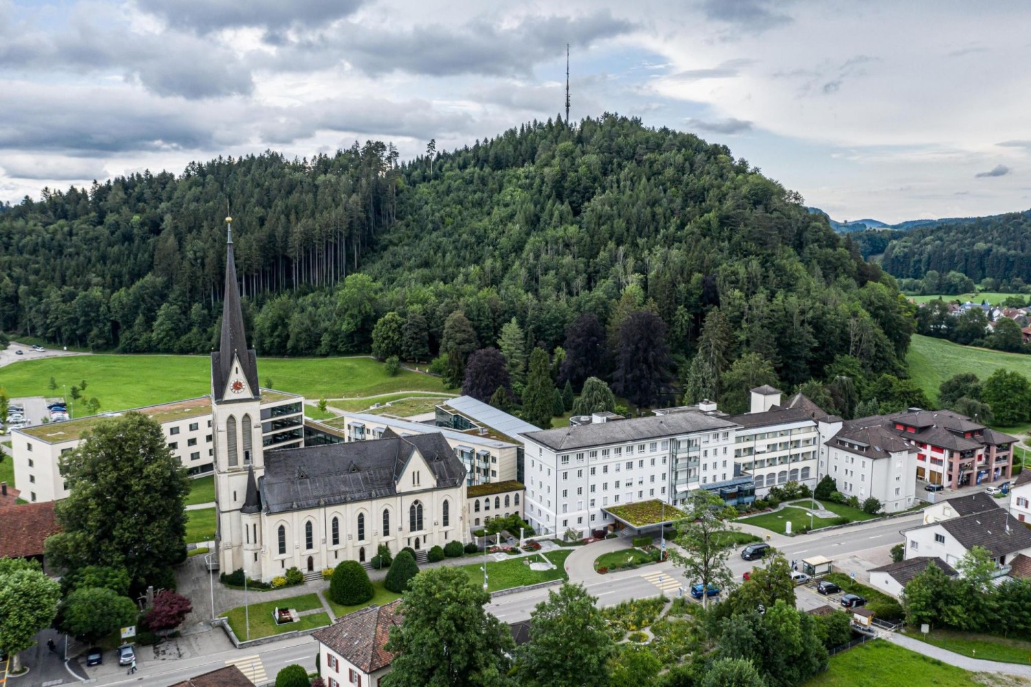 Bald zweigen wir ab in Richtung Vogelsang und wandern auf dem Wanderweg östlich Vogelsang und um den Tolebärg zur REHA-Klinik Dussnang und zum Ziel, dem Restaurant Brückenwaage (zur Bruggi), wo wir in der warmen Gaststube Mittag essen.